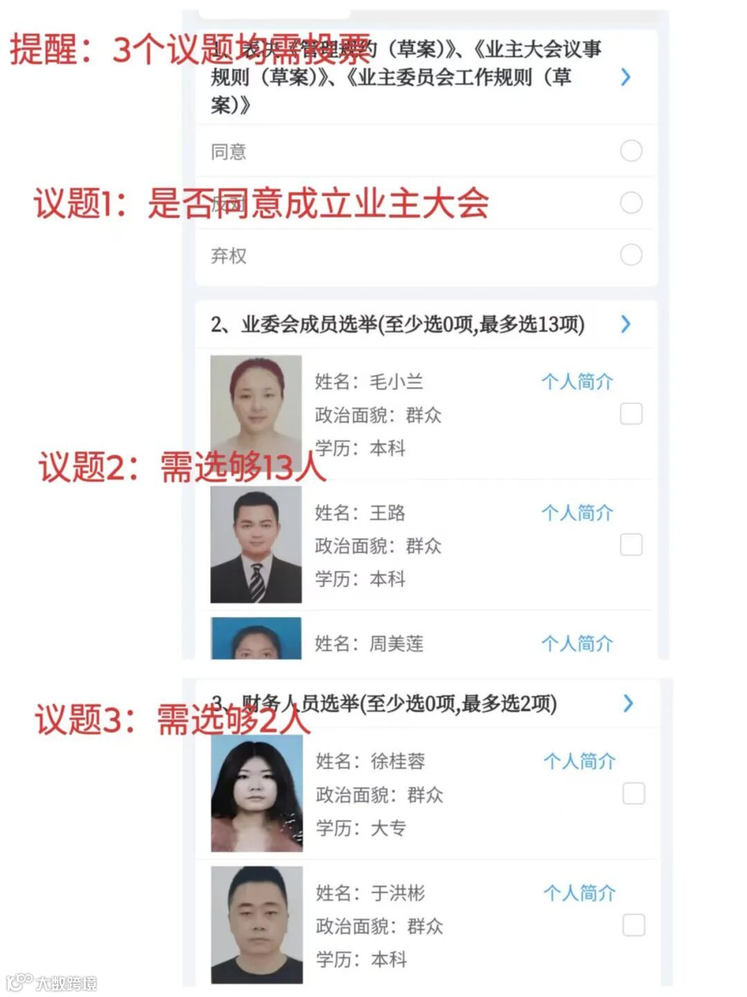 ❗❗❗重要提醒:为切实选出业委会,投票共有3个议题,提醒各位