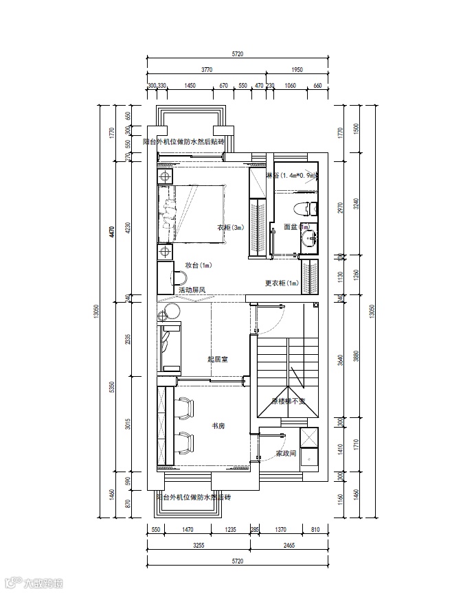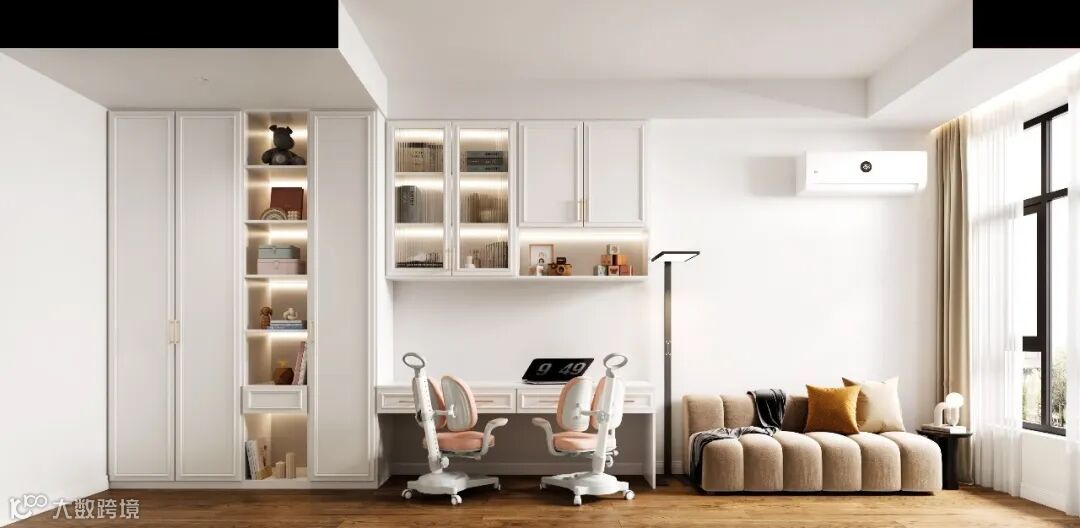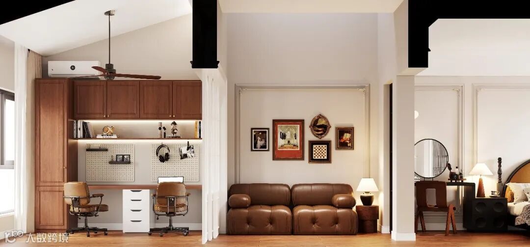 空间上是将整体设计成一个大套间,包含起居室、书房、卫生间等等,可以说是一个能够单独使用的小居室,能满足基本生活需求。