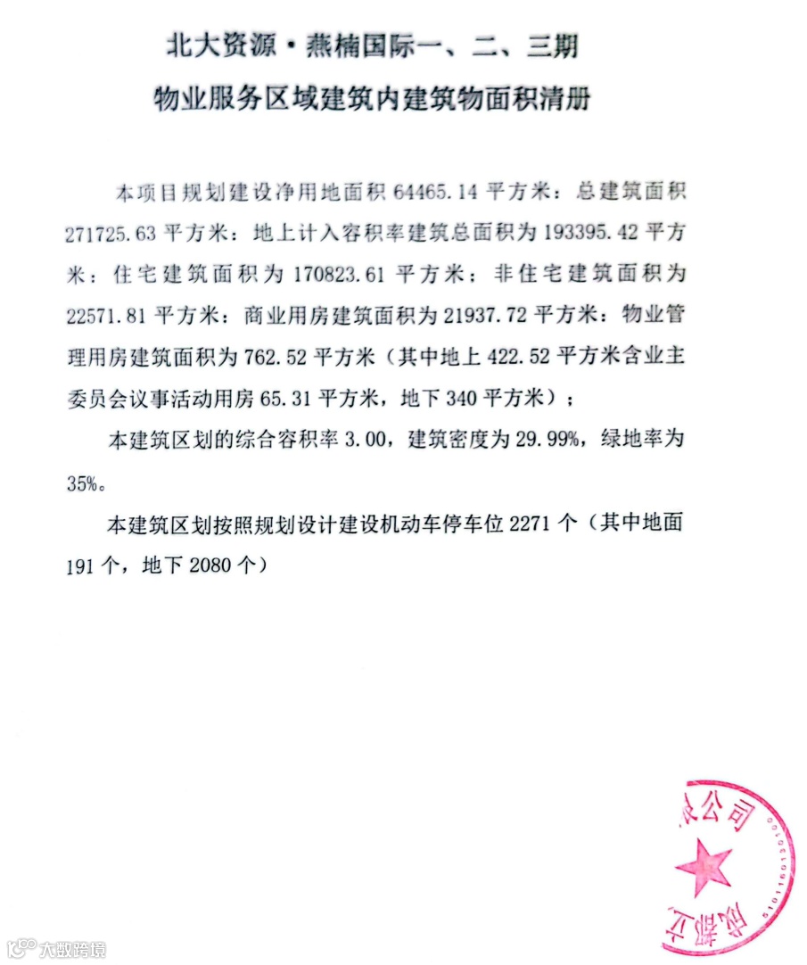 北大资源燕楠国际一、二、三期合并建筑区划划分意见书【公区归属】