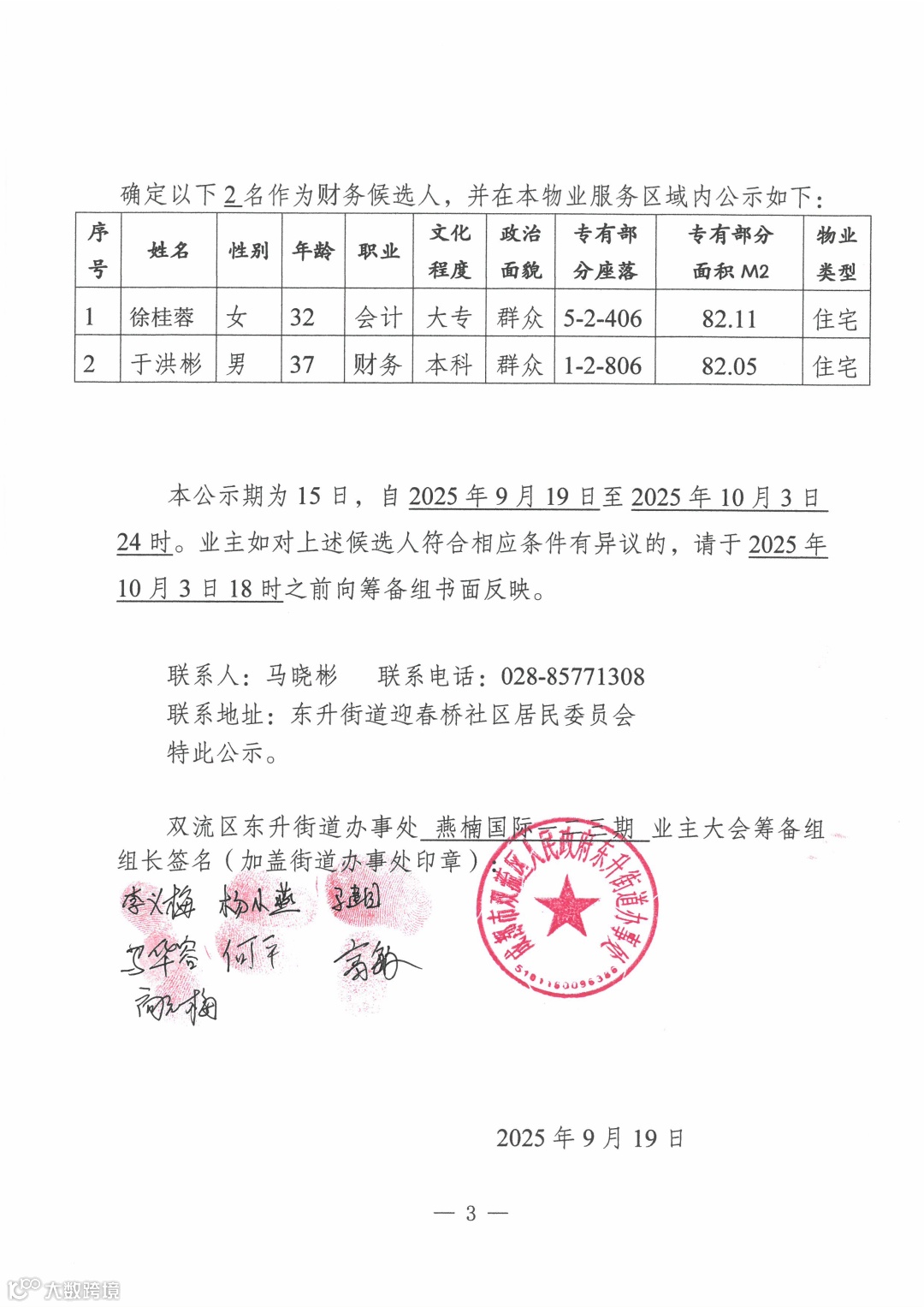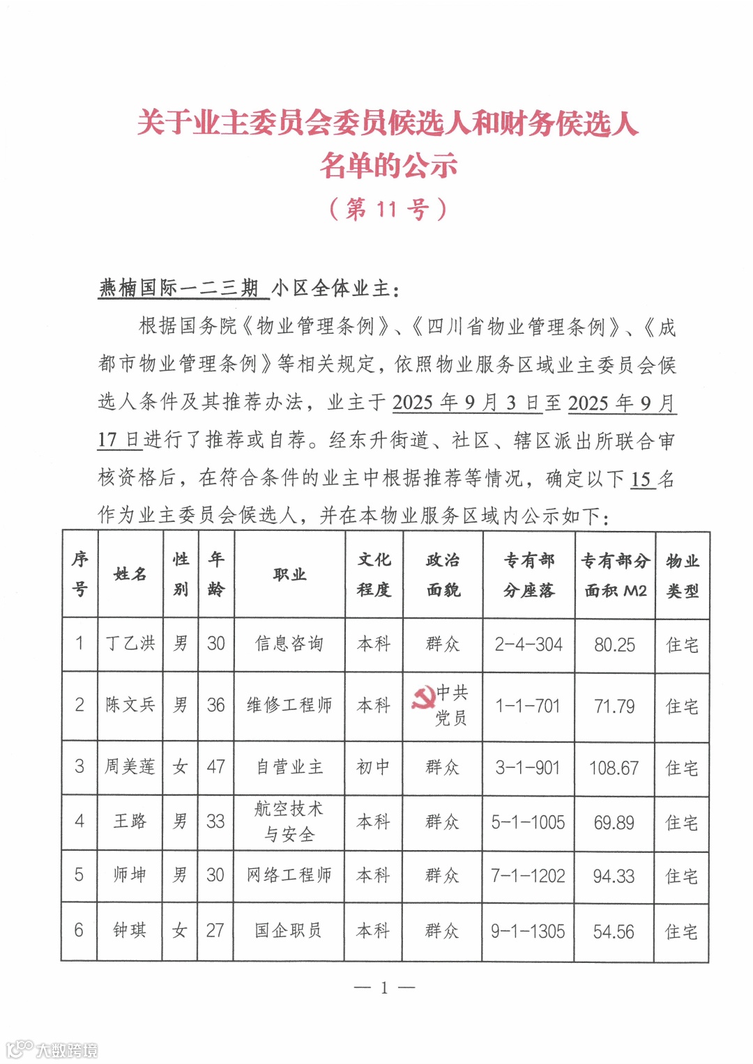 关于业主委员会委员候选人和财务侯选人名单的公示(第11号)