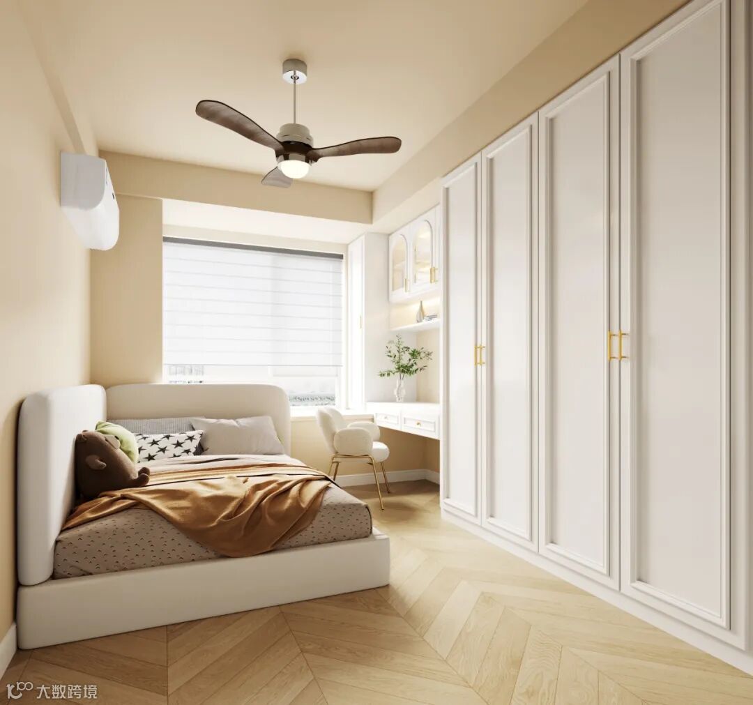客卧的飘窗保留下来,与书桌连接,提供了工作与学习的空间。自成一方静谧天地,有着娓娓道来的自由舒适氛围。