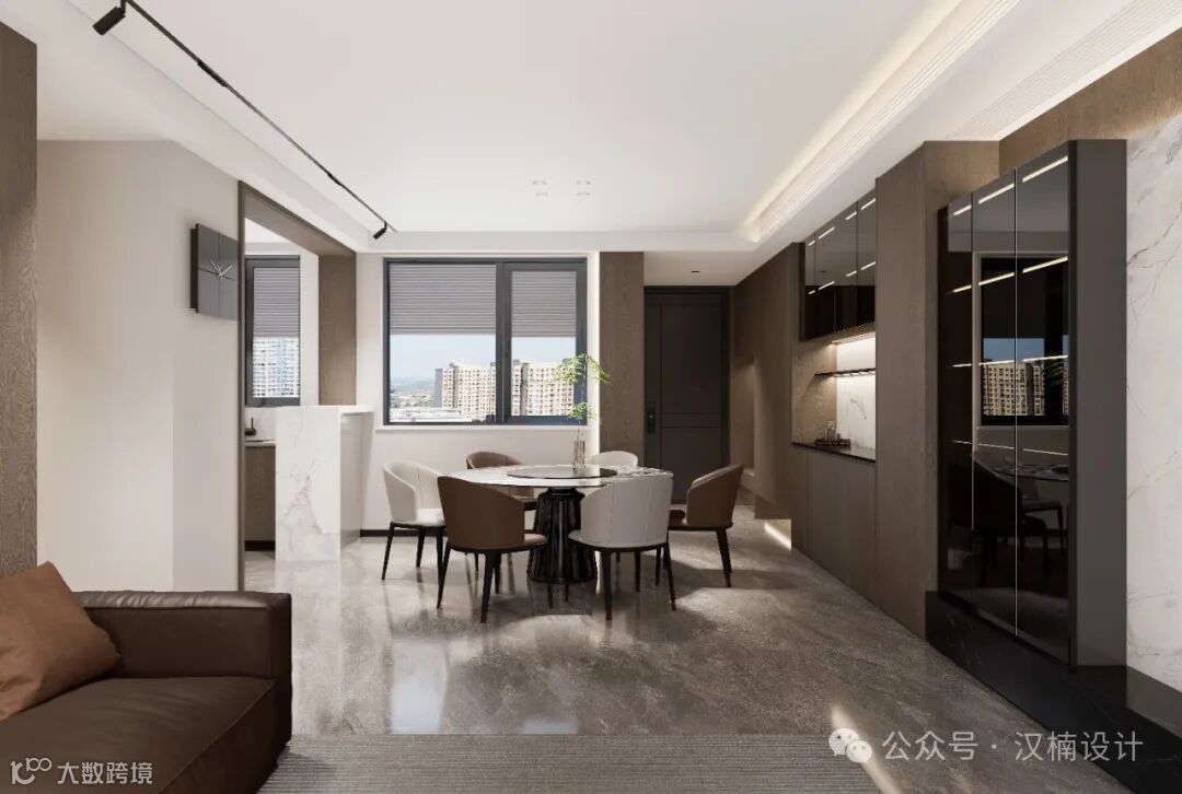 在主卫和客卫都保留的同时,客厅做了一个10米的厅柜展示背景,从门厅一直延续到客厅,视觉上呈现出一种大厅的感觉。