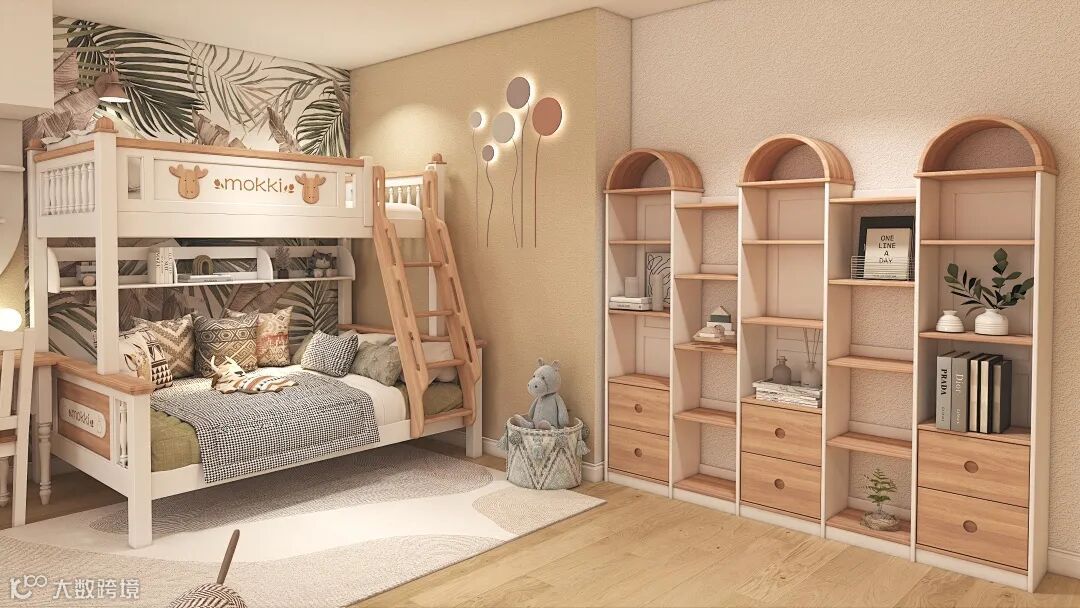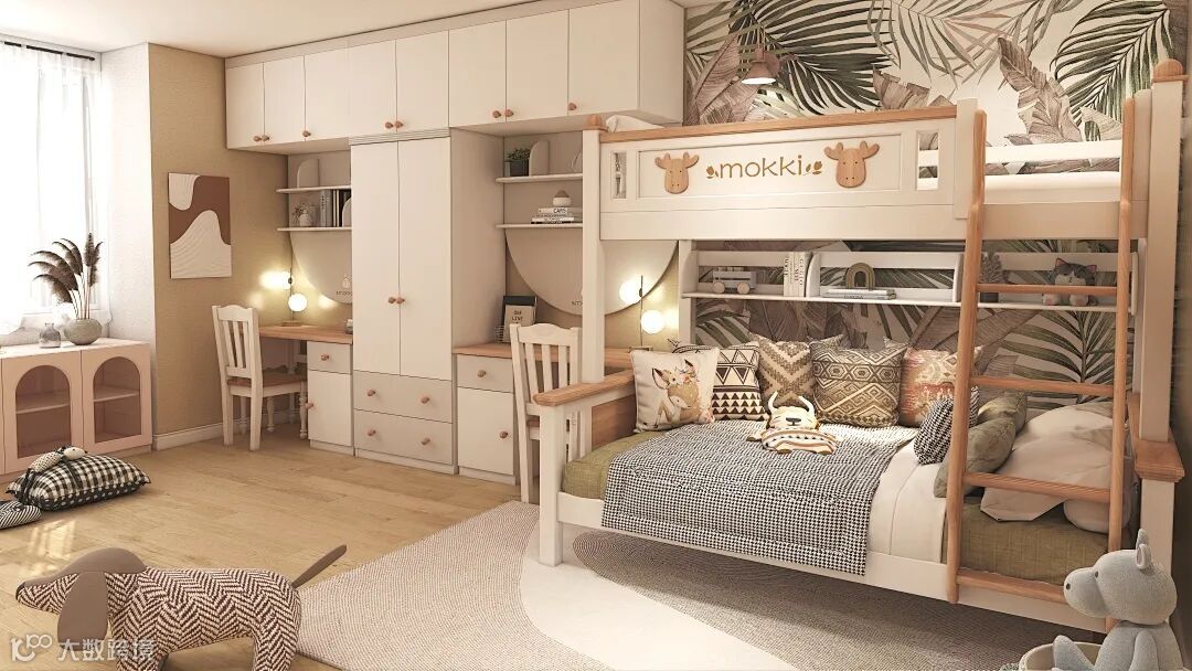 +我爱我家免费提供儿童房全案设计,满足孩子不同 成长阶段的特殊需求。