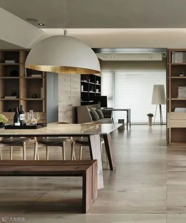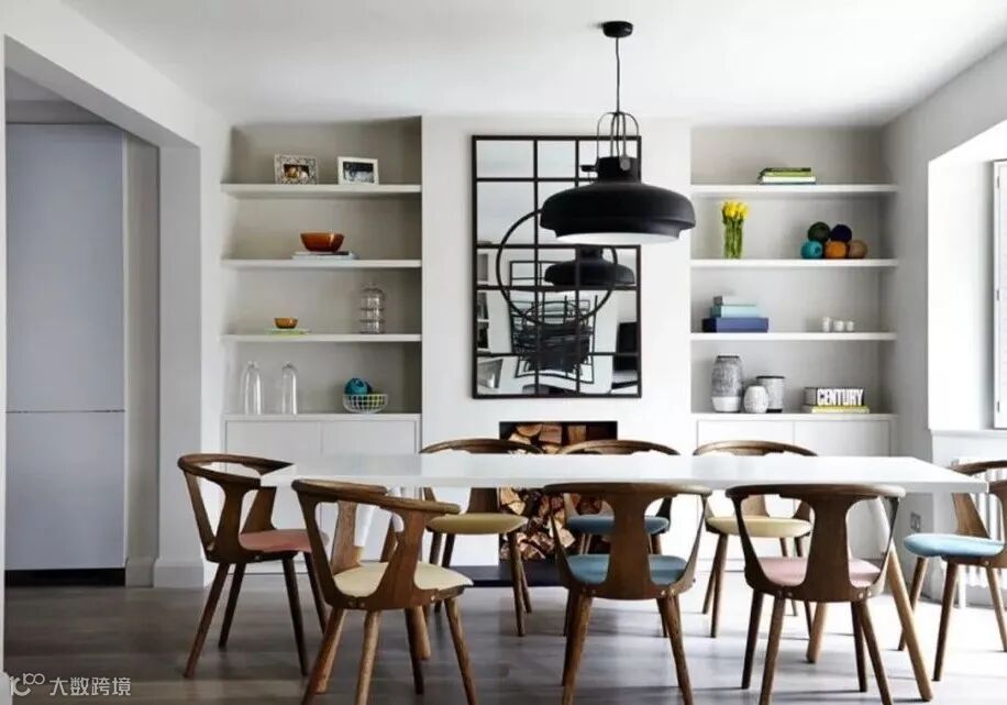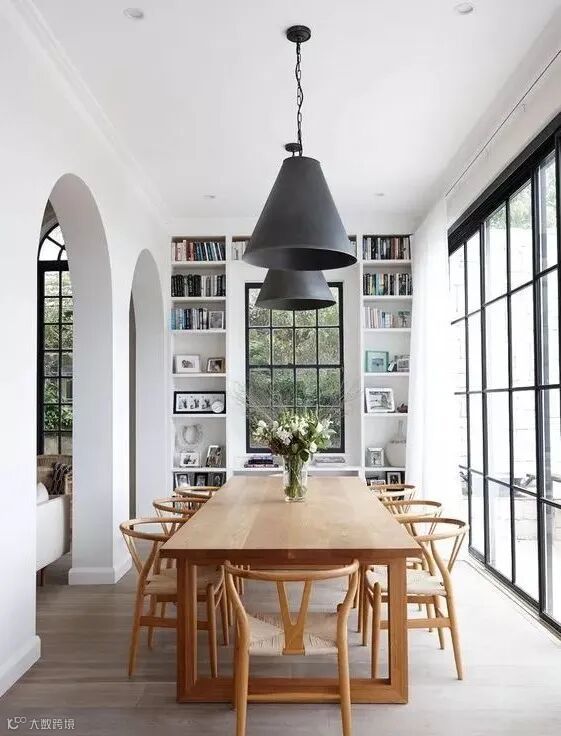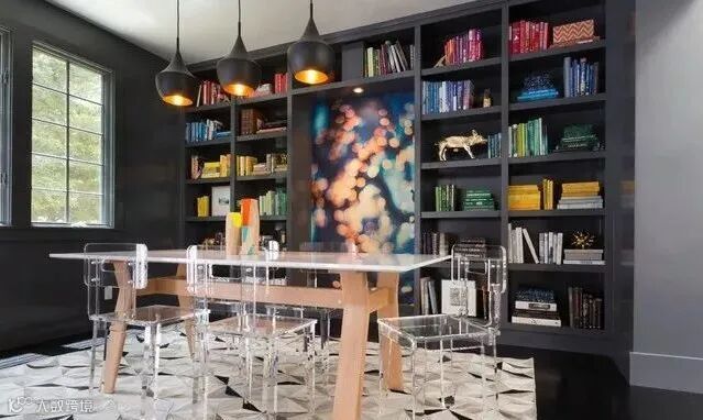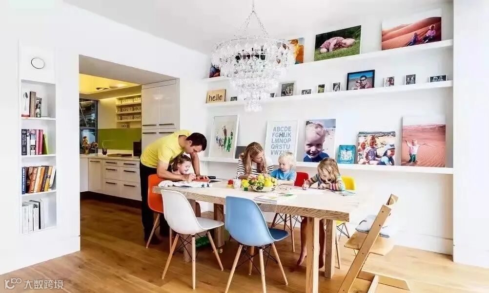 坦白地说,除了用餐,似乎家里的餐厅利用率不高,不妨将餐厅打造成家庭图书馆。餐桌椅当做书桌使用,一家人围坐在一起学习、阅读,提高这个功能区的使用率。
