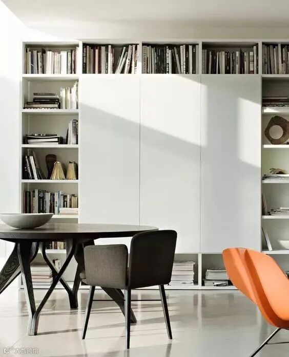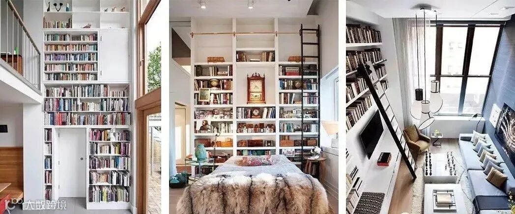 而现在家里的每个空间都可以设置书架,