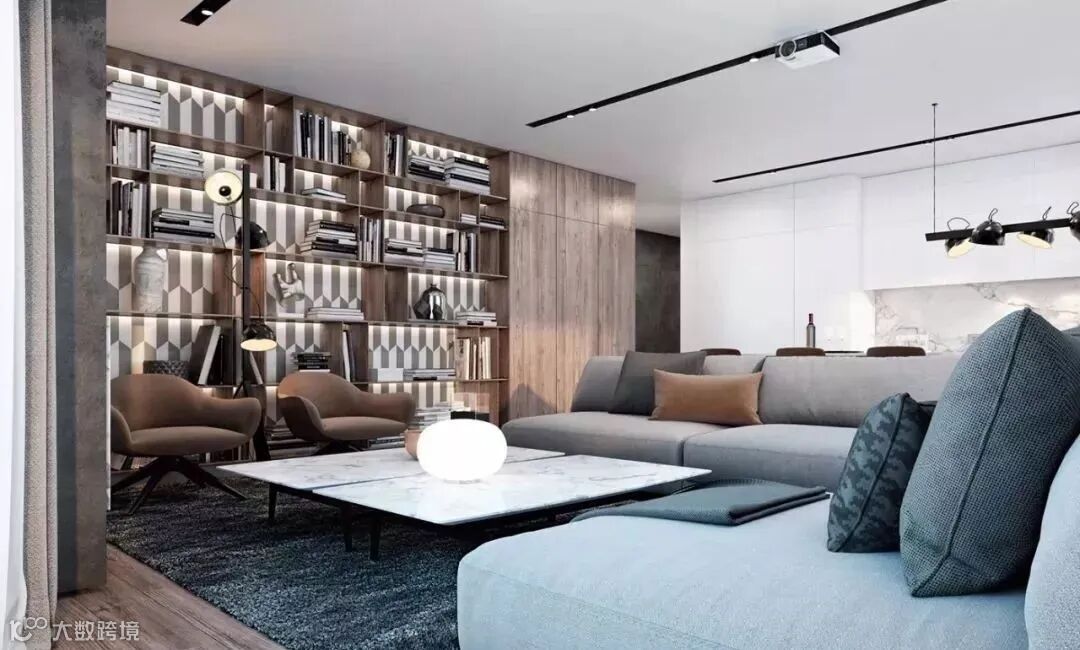 这样的客厅具有了会客聊天+读书藏书的功能,作为家的核心地带,它不仅是亲子互动,共同学习成长的交流空间,同时还拥有了浓浓的书卷气。空间的格调感顿生。