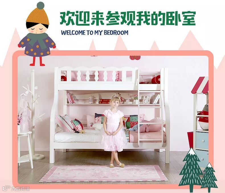 · 我爱我家芬兰实木上下子母双层简约现代床杏仁白·