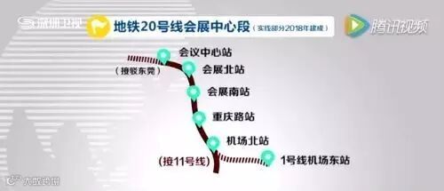 深圳地铁20号线:预计2018年年底开通,共设5个站点,其中3座换乘站。深圳地铁20号线最新线路图。起点为机场北站,终点为会议中心站,共设5个站点,分别为:机场北、重庆路、会展南、会展北、会议中心。