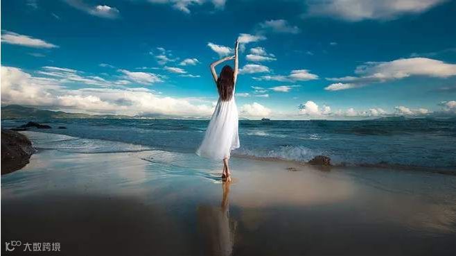 脚踩金色的沙滩,温柔的浪花扑上脚面,