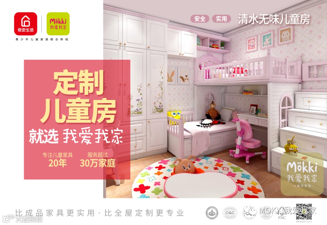 我爱我家品牌自创立以来,以为天下儿童谋福祉为使命,持之以恒打造环保、安全儿童房;坚持原创设计,基材采用进口新西兰松、奥克榄,漆面坚持环保第一原则,采用雷巴水性漆,五金追求极致采用进口品牌“海福乐”。
