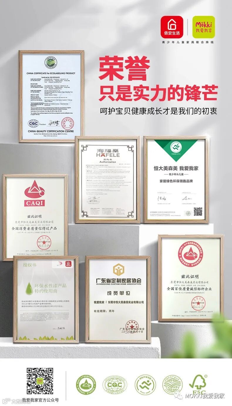 恒大美森美实业有限公司创立于2002年,专注于青少年儿童专业套房事业;我爱我家品牌于2004年诞生,畅销全球,荣获国家技术专利2000余项。