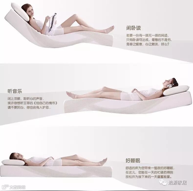 3、MIO智能床采用记忆棉乳胶床垫,零重力漂浮,多种舒适角度,随心所欲。