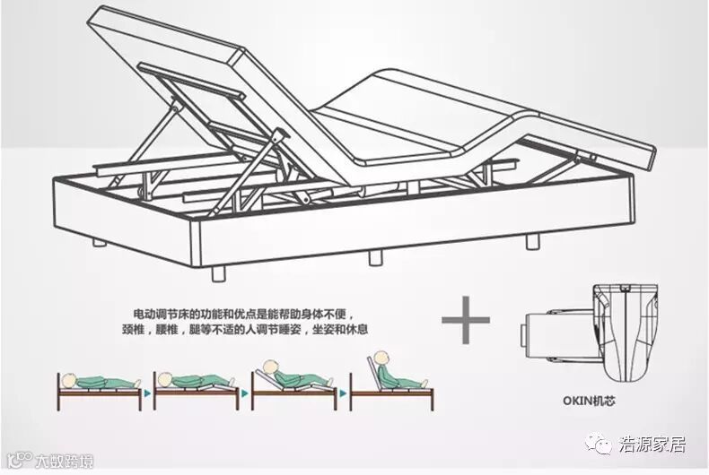 1、MIO智能床可在电机作用下升高腿部位置,使血液回流,对心脏、大脑和腿部大有裨益,另可抬高头部位置,方便在床上看书、看电视等休闲娱乐。