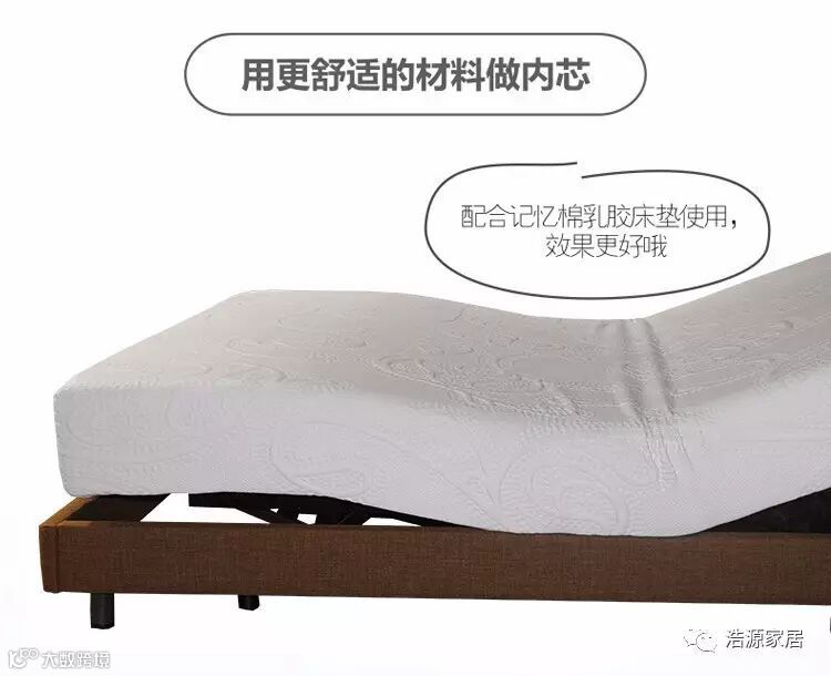 电动床根据人体工学设计,随意调节床架角度,自由调节身体姿势,减轻身体压力,促进血液循环。不同区域还设计有按摩功能,帮助身体快速消除疲劳,实现理疗养生功能。
