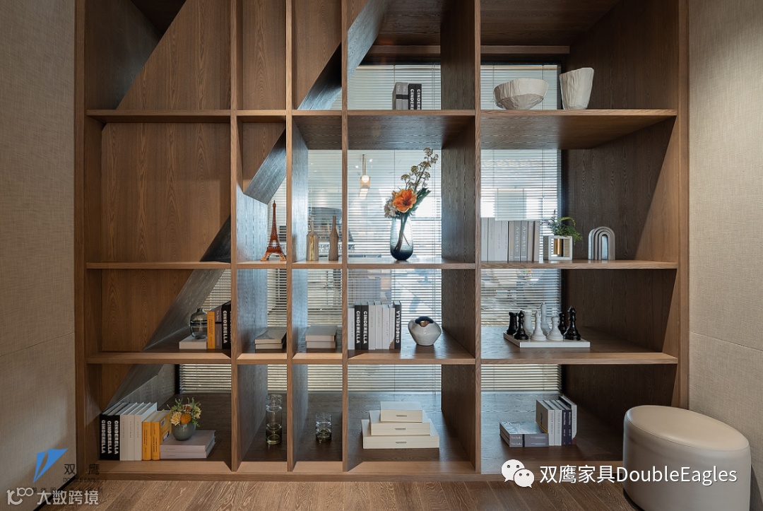 空间细腻的木质纹理与镂空的书柜设计,将空间进行虚实过渡,满足收纳的同时又将区域功能进行合理划分;张弛有度的办公空间,将休闲和办公灵活切换,简单的设计给这一方区域创造了更多可能。