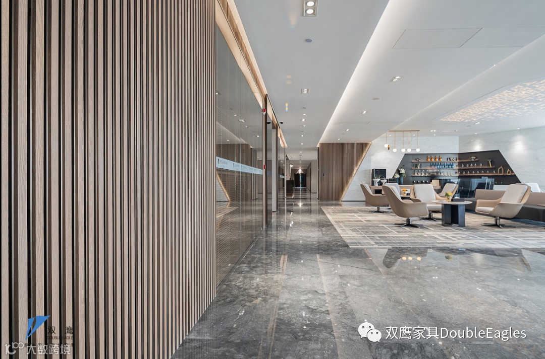 时光的剪影穿插在木质格栅之中,如寸金般的光阴在这里追寻着各自美好的未来;简约现代的接待区,让整个空间更加开放,颠覆了传统沉闷的办公氛围,将艺术的细节一丝不苟的融入工作日常,让这一方办公空间,不单单只是办公。