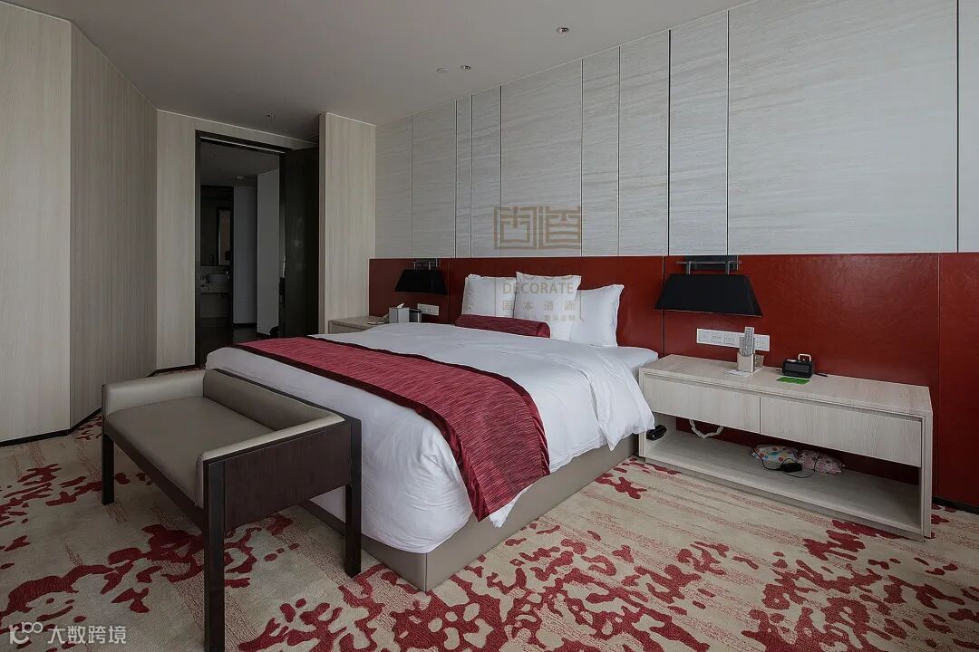 每个客房的构造就像一个精心雕琢的艺术品,光线透过落地玻璃折射进来,照在色泽饱满的房间内,给整个空间营造出宁静低调的艺术气息。