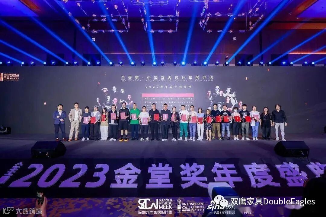 2023年5月25日,由金堂奖全国联盟发起,深圳时尚家居设计周、新浪家居、中国大家居教育平台联合举办的“2023金堂奖年度盛典”,在深圳国际会展中心希尔顿花园酒店隆重召开。作为本次活动的冠名单位,双鹰家具创始人陶建忠先生应邀出席本次盛典,与全国设计精英齐聚一堂,共话设计!