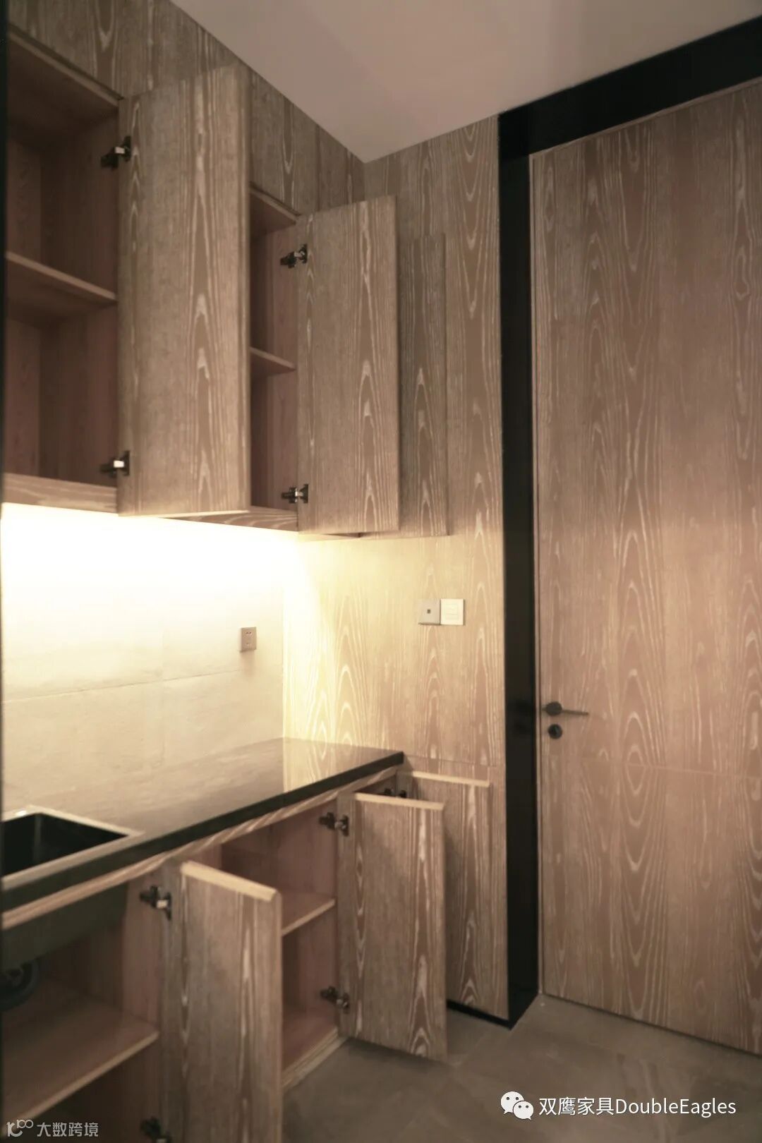 深木色的的储藏室,延续了整个空间的统一脉络;暖光柔和温暖,在层层递进的框景之中,或进或退,或明或暗,让人于不同的变幻之中,定格出人与万物之间的尺度。