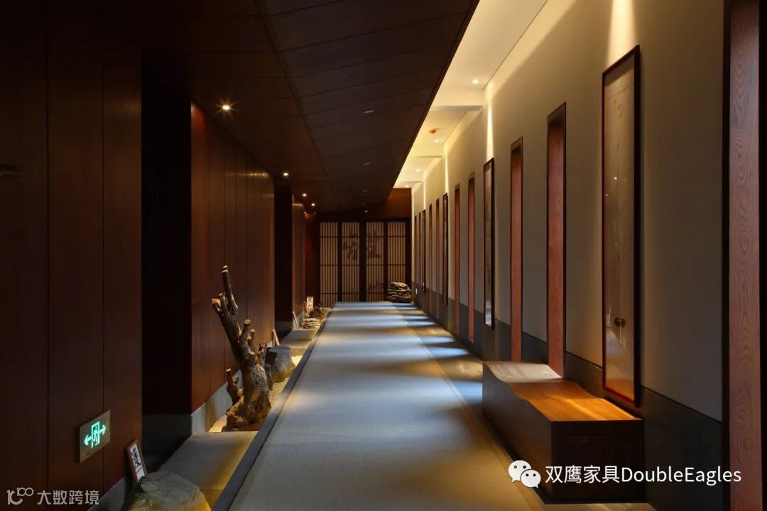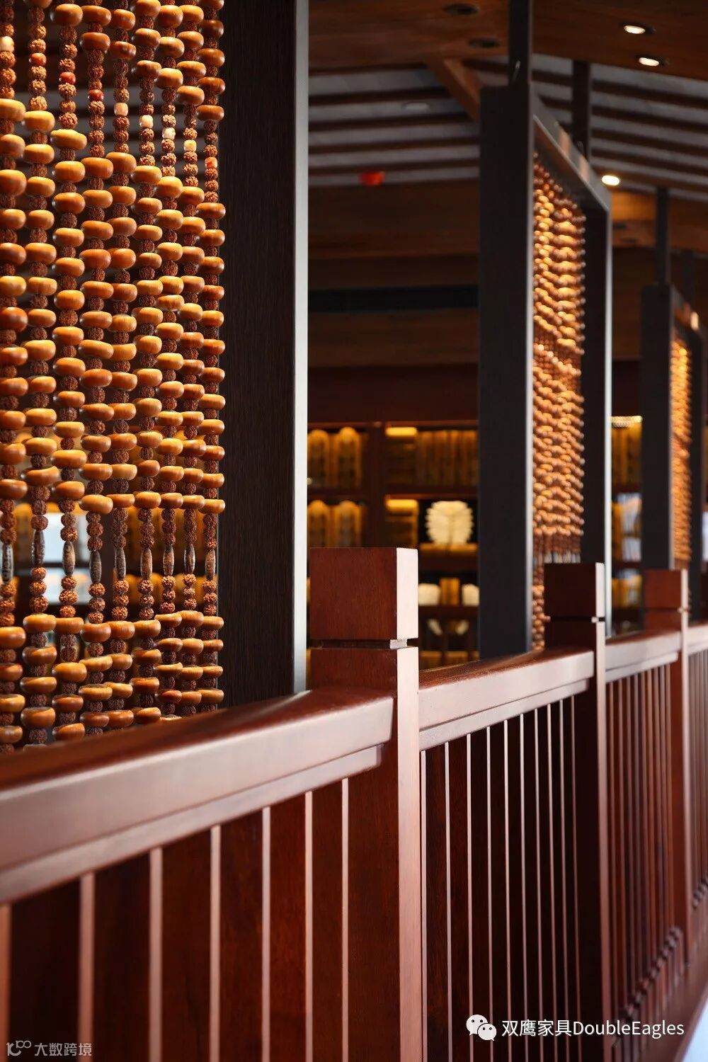 室内的设计融合着庄重肃穆和典雅深邃,大面积的赤红原木释放出古色古香的佛禅气韵,仿佛穿越千年,静坐于菩提树下。珠帘前,有香氤氲。其中蕴含深厚的文化底蕴:如珠走盘,无有方所。