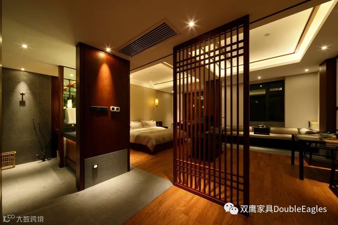 房间内的整体格局以木色作为主色调,带来返璞归真的自然气息,墙体和遮光帘则以纯白色为主,象征无字经书。房间内还设有榻榻米,以及茶道、花道和香道等器具,浓厚的佛禅意境与典雅庄重的设计融于一体。