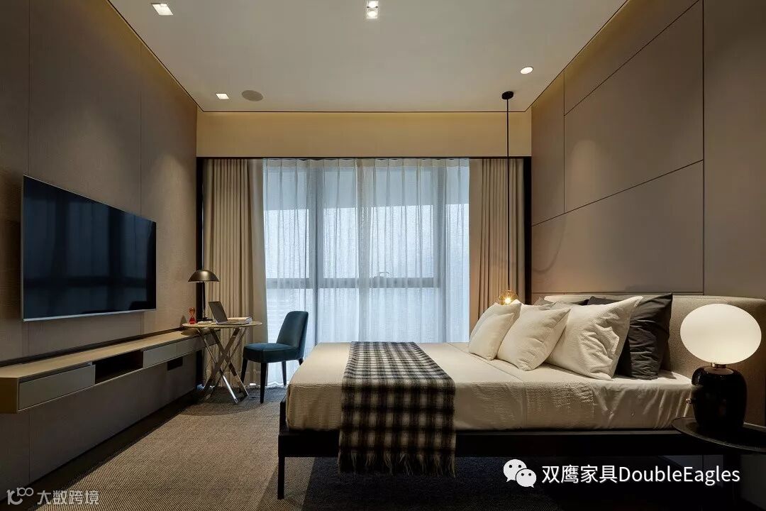 卧房其独有的温馨、豪华、舒适的环境及其固装家具风格与整体装饰风格一致,以简洁休闲作为主基调,配有超舒适的甜梦之床,格调高雅。