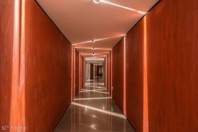 穿越不同的空间场景,感受着不断变化的室内风景,酒店客房走廊上橘红色的木饰面,让人仿佛踏入静谧、纯净的艺术空间,别具一格的色彩活力,惊艳了来者的视觉感官。