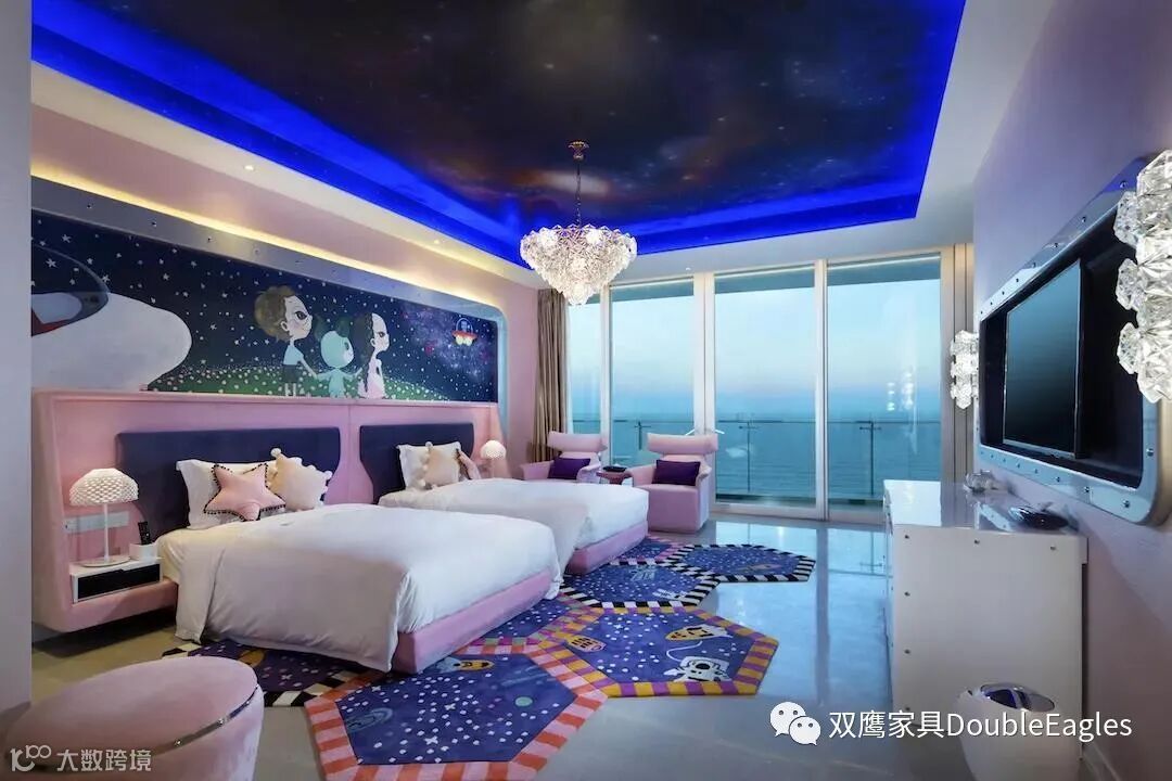 主题客房是一处造梦场所,不拘泥于某个特定的国度和时代,四处载满了奇思妙想;个性化的太空主题,连接的不仅有山海灵气,还有无限想象。