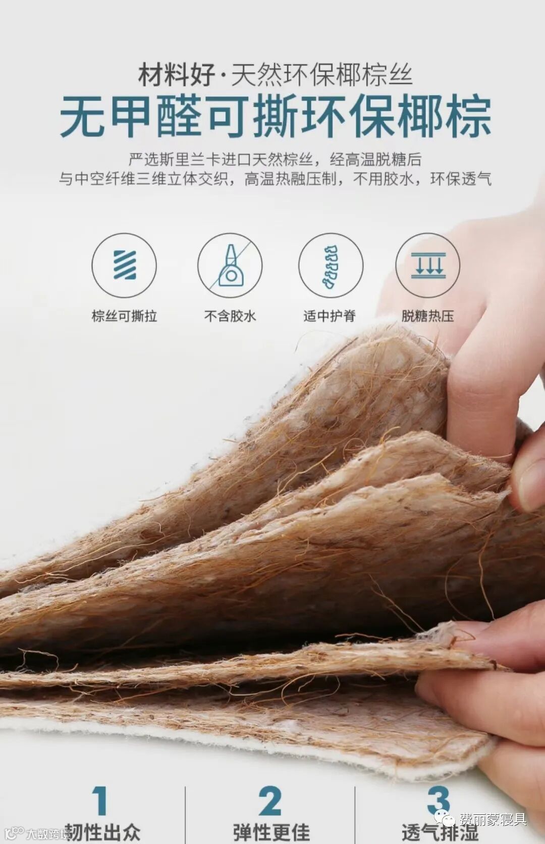 椰棕床垫:天然环保,透气性好,具有很好的支撑力。特别适合有背部疼痛或者敏感皮肤的人群。