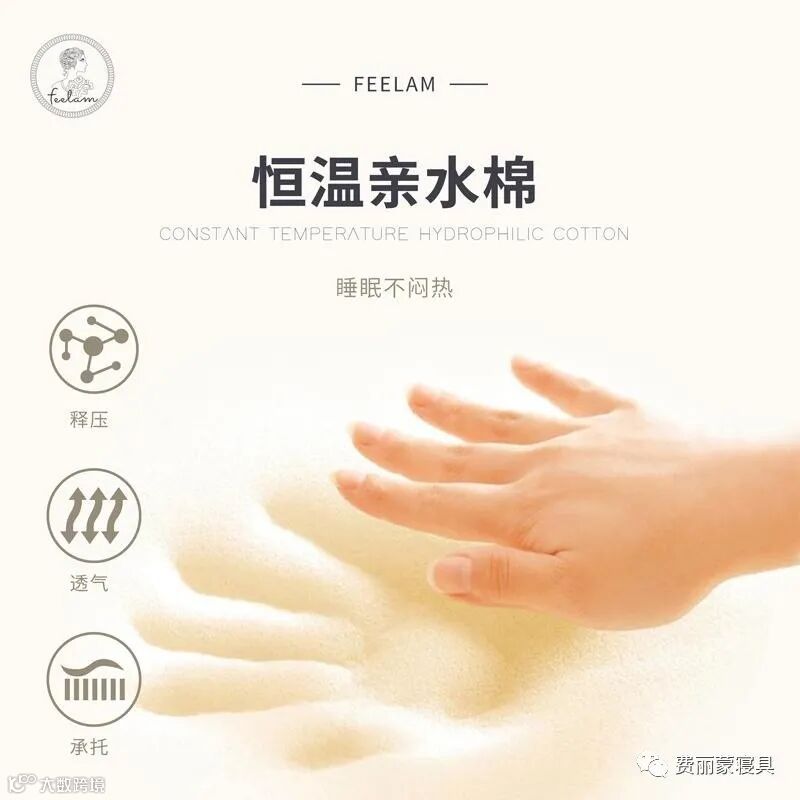 4、海绵床垫 海绵床垫中比较高级的是记忆海绵床垫,受到重压后会自动调节,将压力均匀分散,但长时间还是容易变形,丧失支撑力,透气性也较差。海绵床垫价格便宜、柔软轻便,而且保暖性很强。目前比较优质的是亲水棉,是普通记忆棉的升级版,更环保,密度更高,是可回收的材质,其对温度极为敏感,能准确地塑造人体的体型轮廓,且具有解压性,慢回弹性将人体与床垫接触点的压力均衡的分散,提供最均匀的支撑力,彻底放松颈肩部及腰部,翻身零静音,而且经过抗菌防螨处理,有效避免螨虫过敏