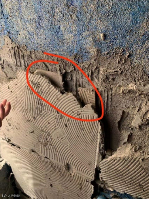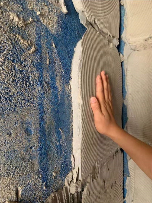 --2.厚贴时,瓦工一般会调的比较干稠,因为正常稠度的瓷砖胶在厚贴时往往会出现沉降,瓷砖胶太过干稠,就很难湿润瓷砖和墙面,粘接力也随之降低,导致墙面空鼓。