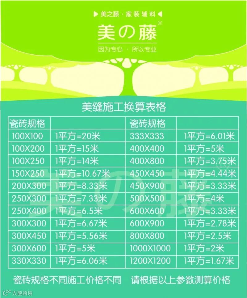 第一步:首先要知道需要美缝的平方数,然后根据上表,把平方数换算成米数。
