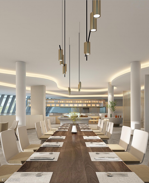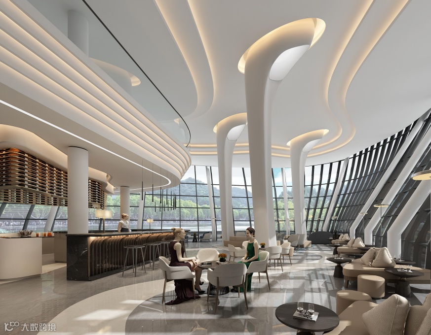 在建筑空间中的艺术美学规律多表现为若干弧线的重复和渐变,材质和色彩互为表达。