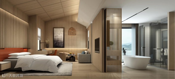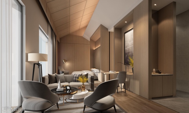 明亮舒畅的阳光洒入通透的室内,沁人心脾的自然清新,拉近亲密空间,超越于奢阔之外,给予「第三空间」充足的想象。
