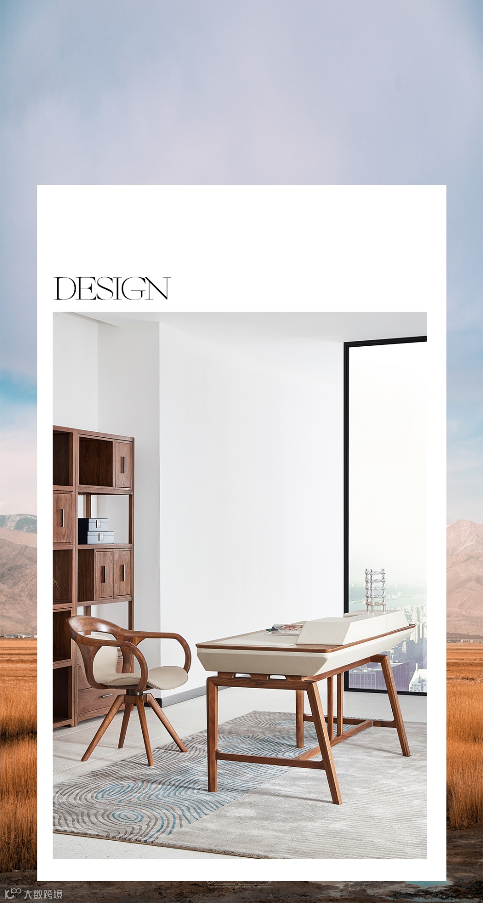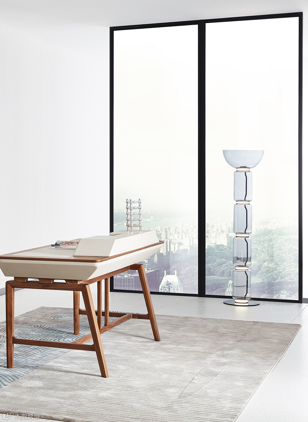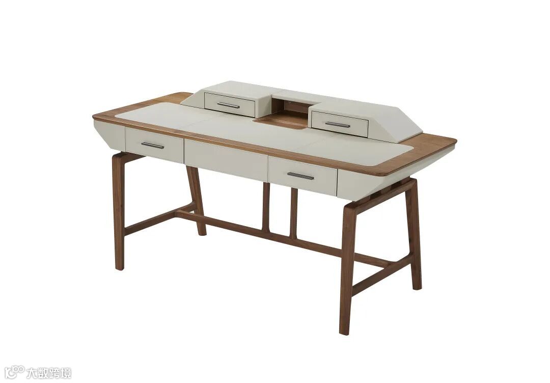 浅色与深色的堆叠相嵌,延展出干净、舒缓的感官体验。黑胡桃木的使用传递出一种温润的气质,在方寸书桌中凝聚起浩瀚书海。