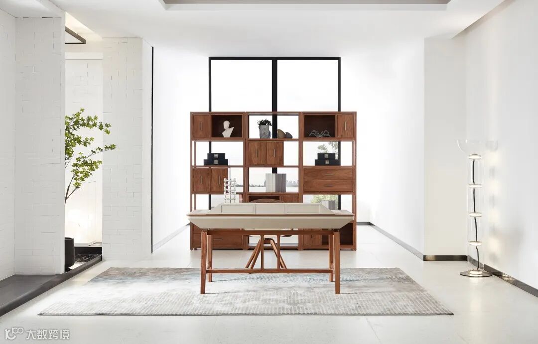 书桌设计凝结东方美学的对称精髓,整齐有序。
