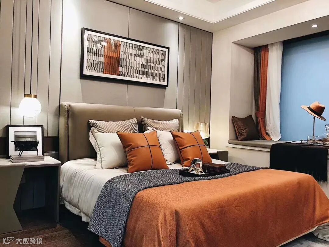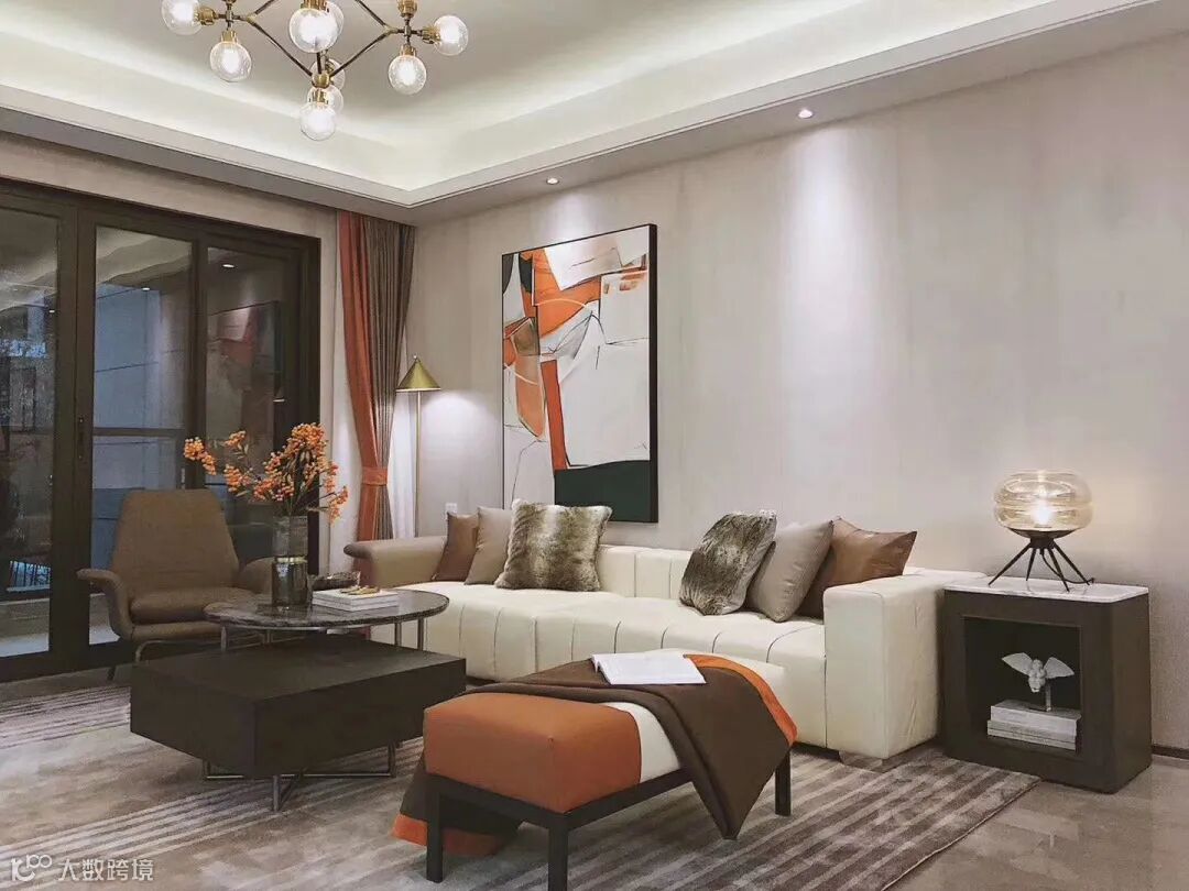 住宅整体采用中性色调搭配爱玛仕橙撞色