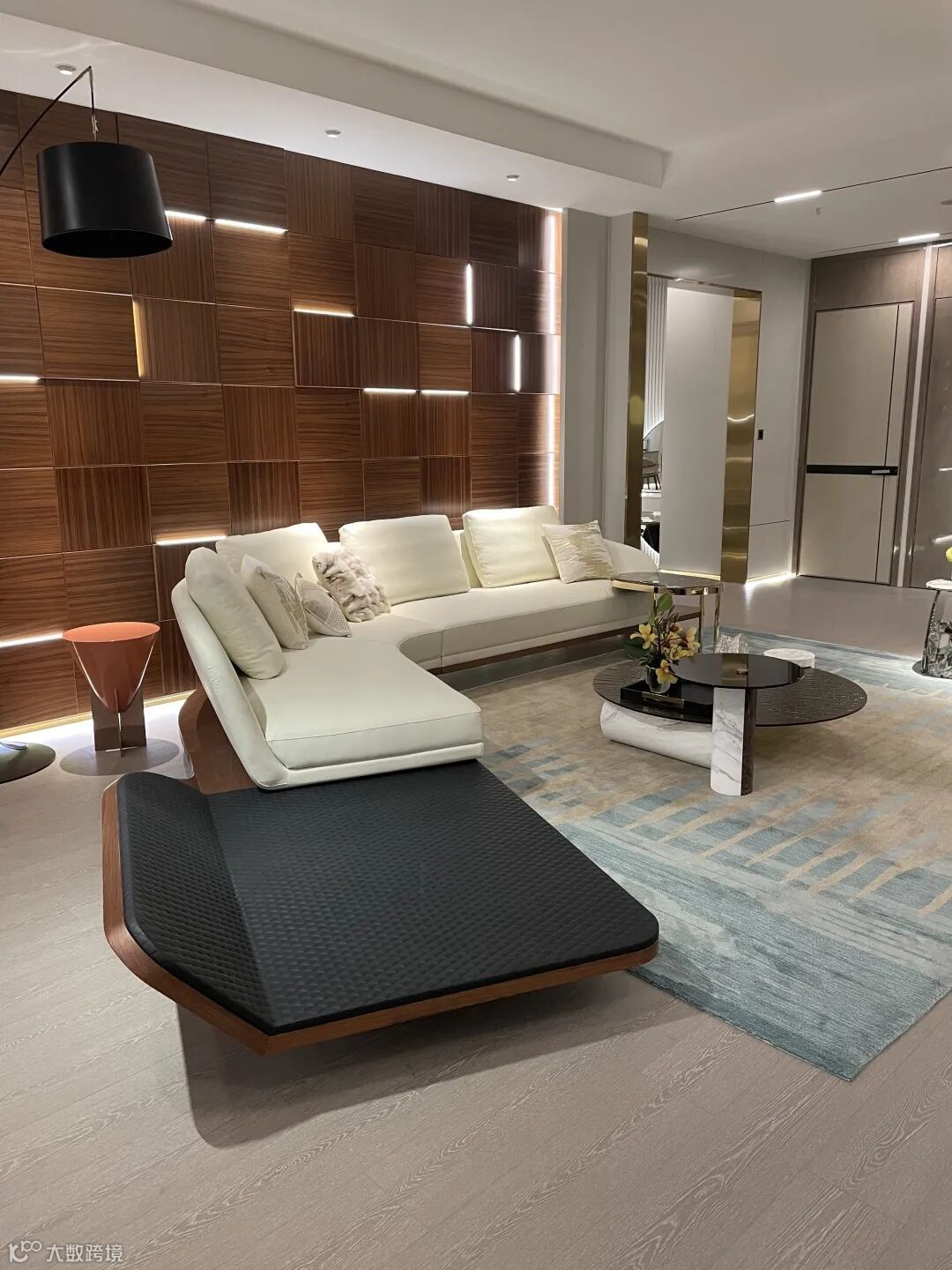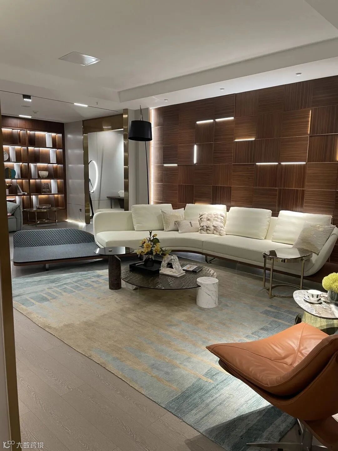 圆润的弧形设计在宽阔的空间,更为温和自然,缎面布艺的沙发软靠巧妙地与绗缝皮革做贵妃榻相结合,原木、皮革、布艺...不同的材质组合,相互碰撞,在视觉上呈现别具一格的感官效果,对于意式理念,不止于形态的模拟,更多的是表达对其内在意象的理解。