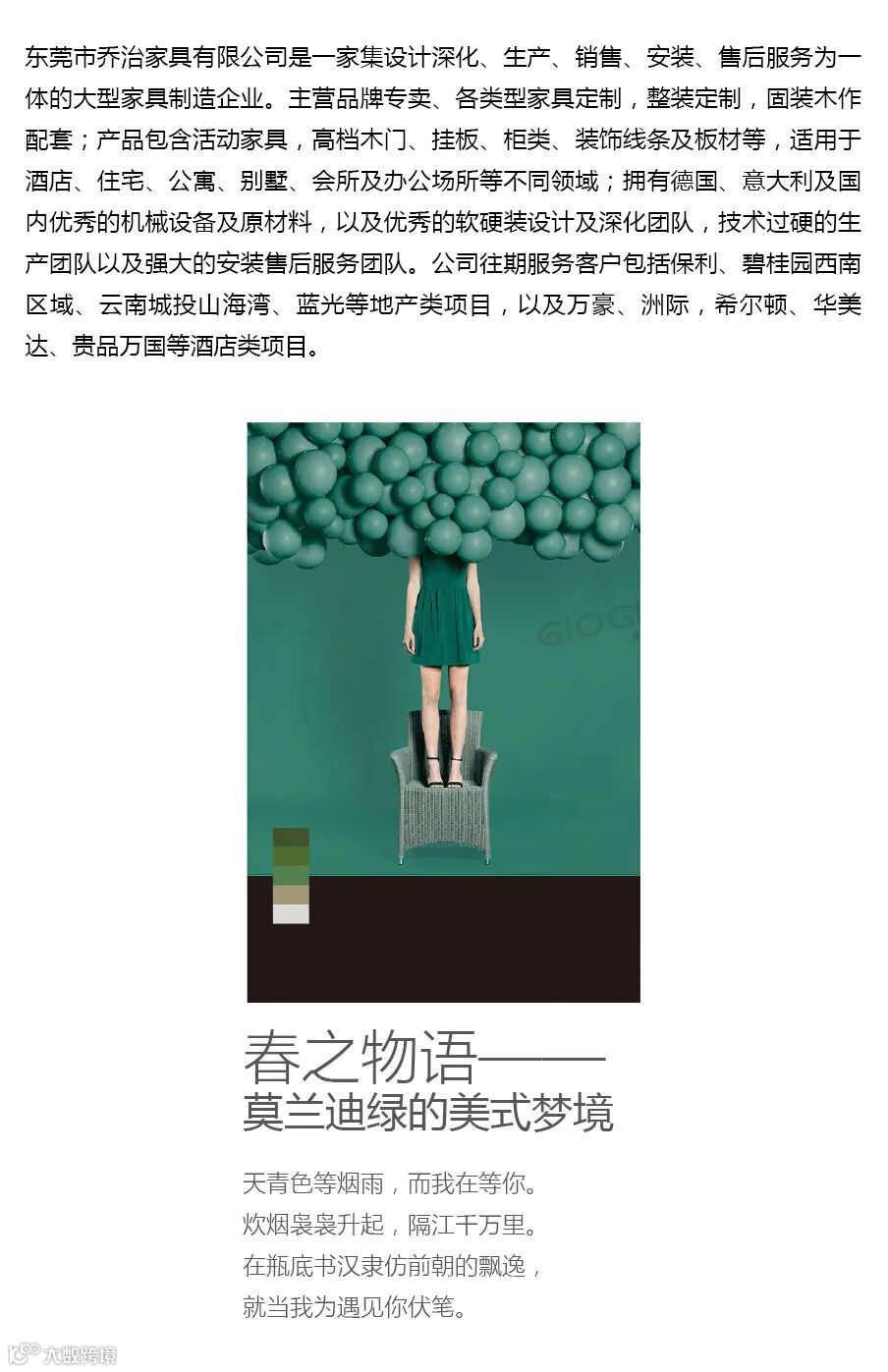 集设计深化、生产销售、安装售后等服务为一体的大型家具制造企业—东莞市乔治家具有限公司。30000平米生产线,主营各类型家具全案定制,专注于酒店、私宅、会所项目固装及活动家具定制。适用于住宅、酒店、地产、别墅、会所等领域。乔治家具,让所见更美