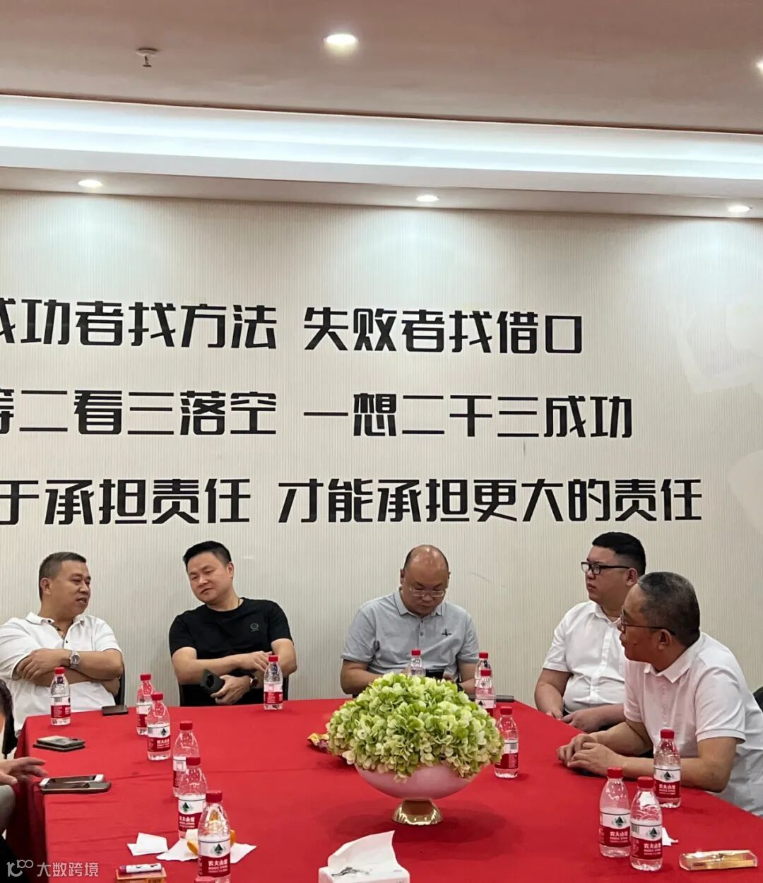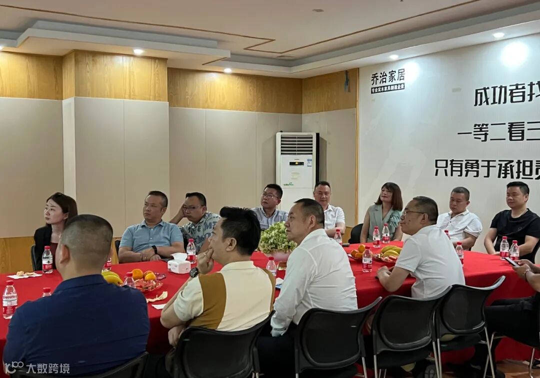 参观完展厅,陈董事长带领大家来到会议室进行座谈,陈董事长介绍了乔治家具的发展史与产品特色。会长王天兵和定峰汇会长杨峰分别做了发言。