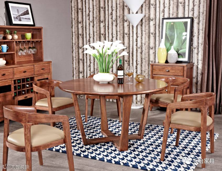 这款曲线餐台采用纯实木材质,天然的山水花纹,美观贵气,有很好的风水寓意。