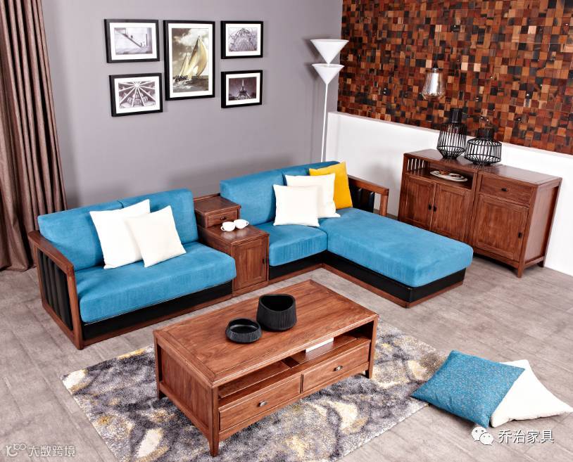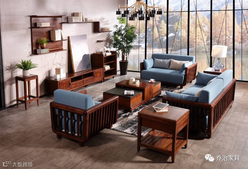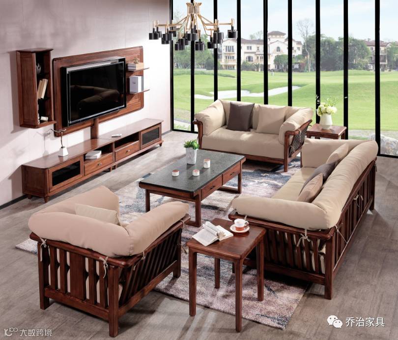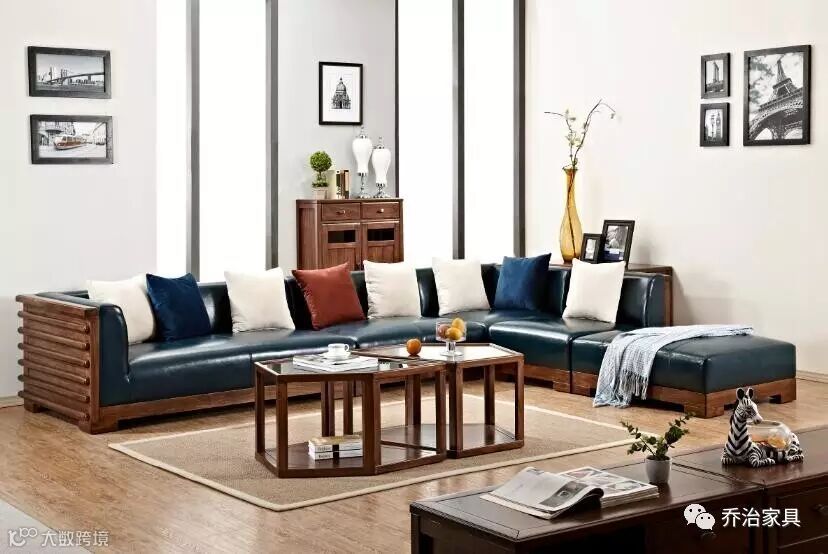 沙发的外形,方正稳固,沙发脚全部采用大块实木支撑,非常稳固。寓意您的事业四平八稳,基业长青。
