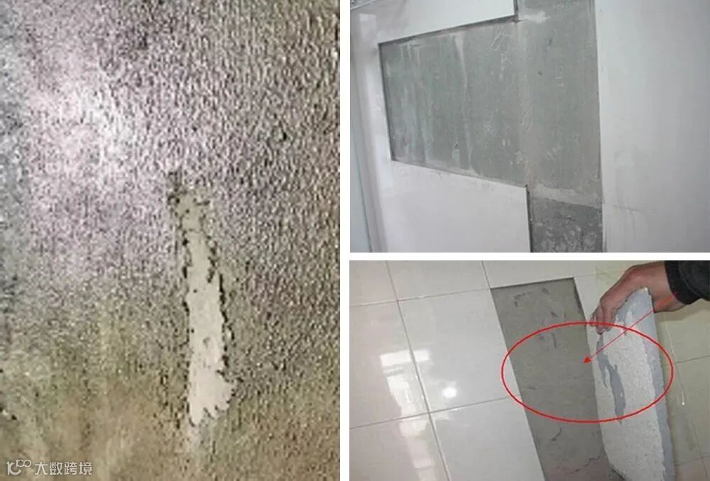 双组份背胶应用于湿贴瓷质砖的背面处理,是一种新型的界面剂,起到超强的界面搭桥作用。但双组份背胶是作用于瓷砖与瓷砖胶之间,而不是作用在基面的。由于基面的吸水率高,背胶很容易被吸附到墙里,导致瓷砖背胶无法成膜丧失粘结力。