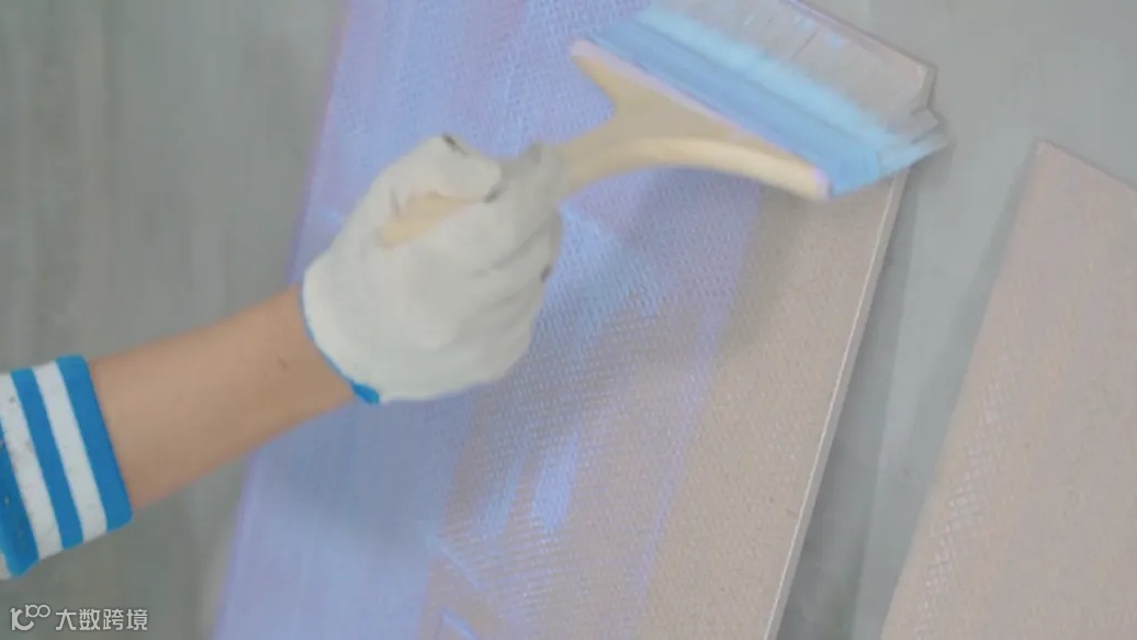 在涂刷背胶完成后,需要用专用的胶垫进行间隔,保证足够的空间进行空气流通,更有利于背胶的干透。并且常规天气下,瓷砖背胶干透成膜时间约为2小时左右,如果遇到湿度大、高温、不通风的情况,要延长待干时间。