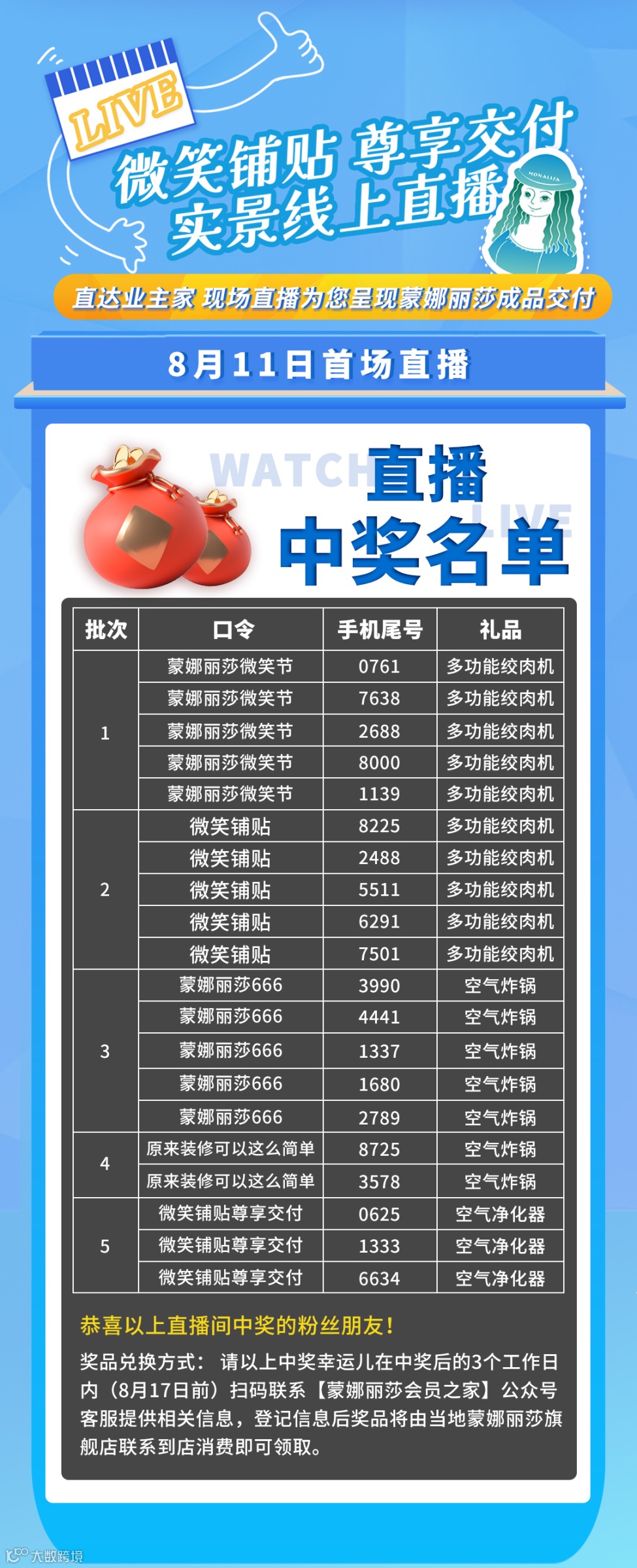 8月18日15:00(即明天),我们将继续连线“微笑铺贴·尊享交付”铺贴现场,带大家亲身感受产品专项安全运输的省心;带你参观规范标准的微笑铺贴现场,还有一起沉浸式体验专业背景墙铺贴全流程!而且,直播多轮免费抽奖继续high!