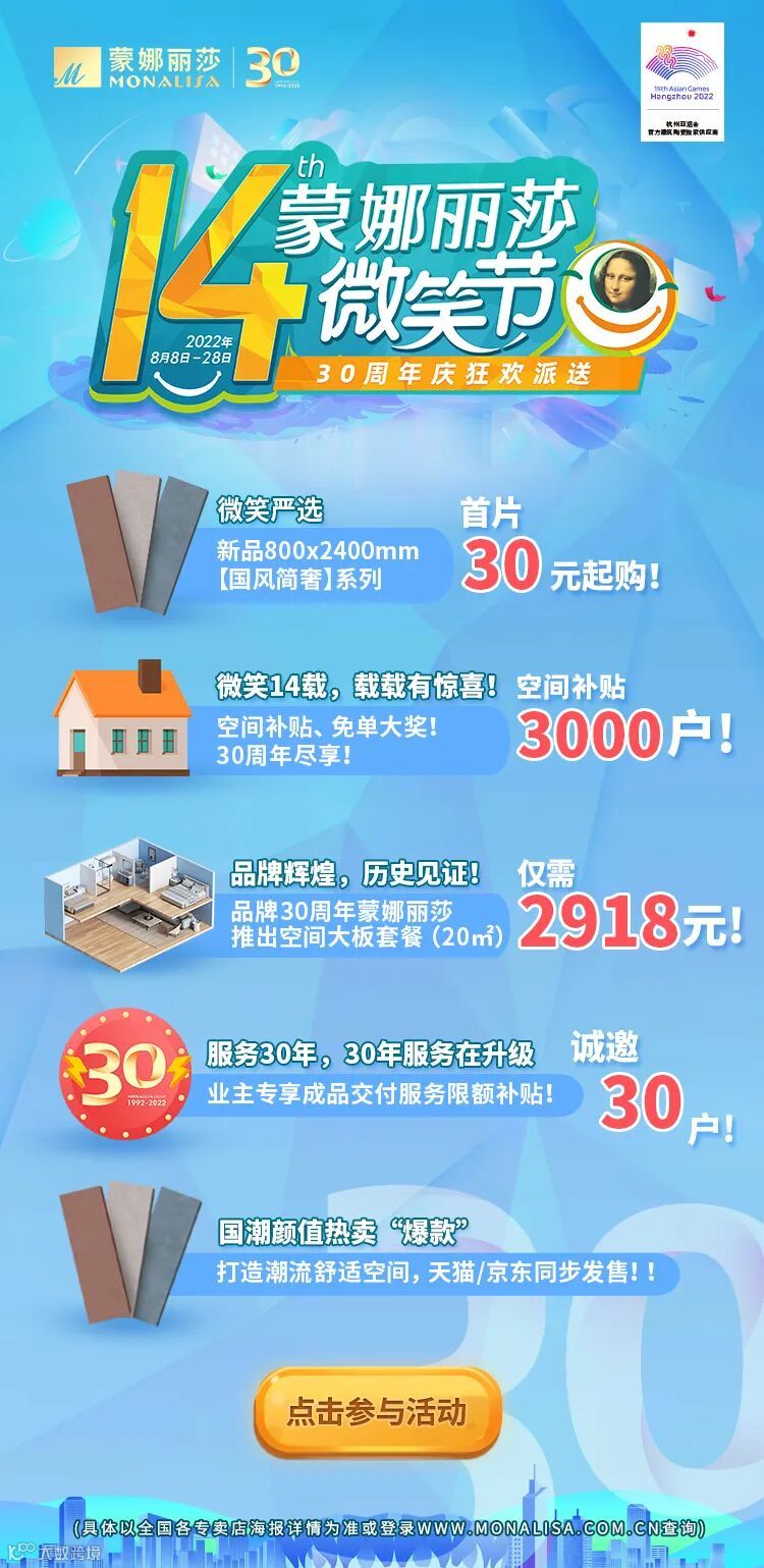 而在“第14届蒙娜丽莎微笑节”及30周年庆狂欢庆典之际,蒙娜丽莎开启“微笑铺贴·尊享交付”服务实景线上直播!