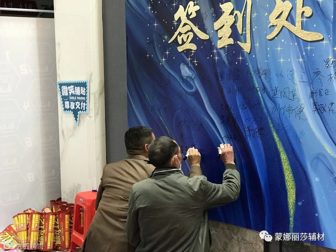 由蒙娜丽莎市场部辅材主管杨辰逸为现场人员讲解蒙娜丽莎最新的成品交付服务体系,深度分析成品交付的行业痛点、“微笑铺贴”方案优势及服务保障,让学员们对“微笑铺贴”成品交付有更好的认知与理解,得到学员以及经销商的一致认可。