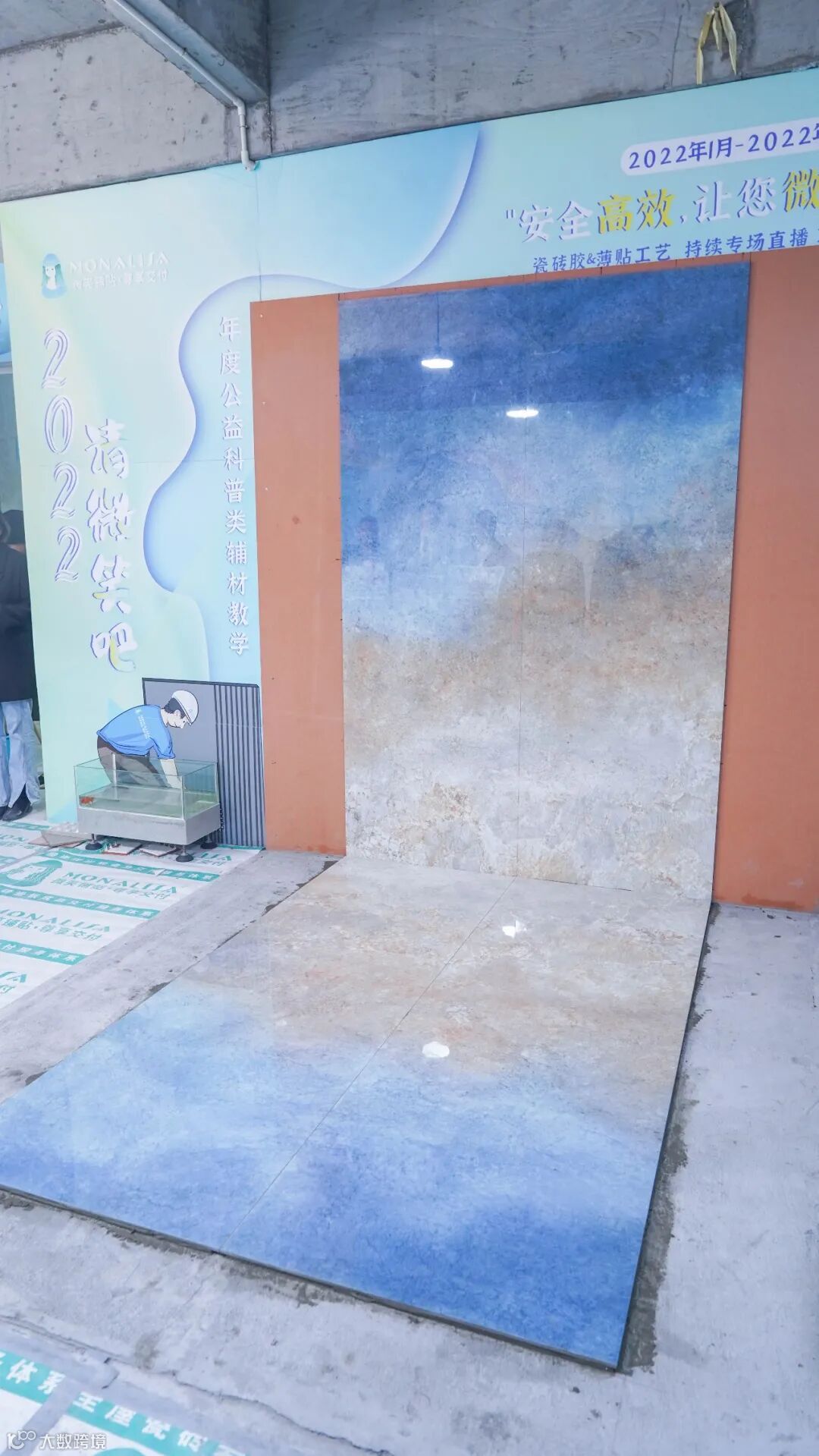 2月16日晚7点30分,“2022·请微笑吧”蒙娜丽莎瓷砖辅材教学直播活动第二期准时开播。本期的重点在于蒙娜丽莎全新产品——柔性挂贴胶对于800*2400mm连纹背景墙的铺贴应用以及特邀嘉宾现场分享辅材的使用心得与销售经验。