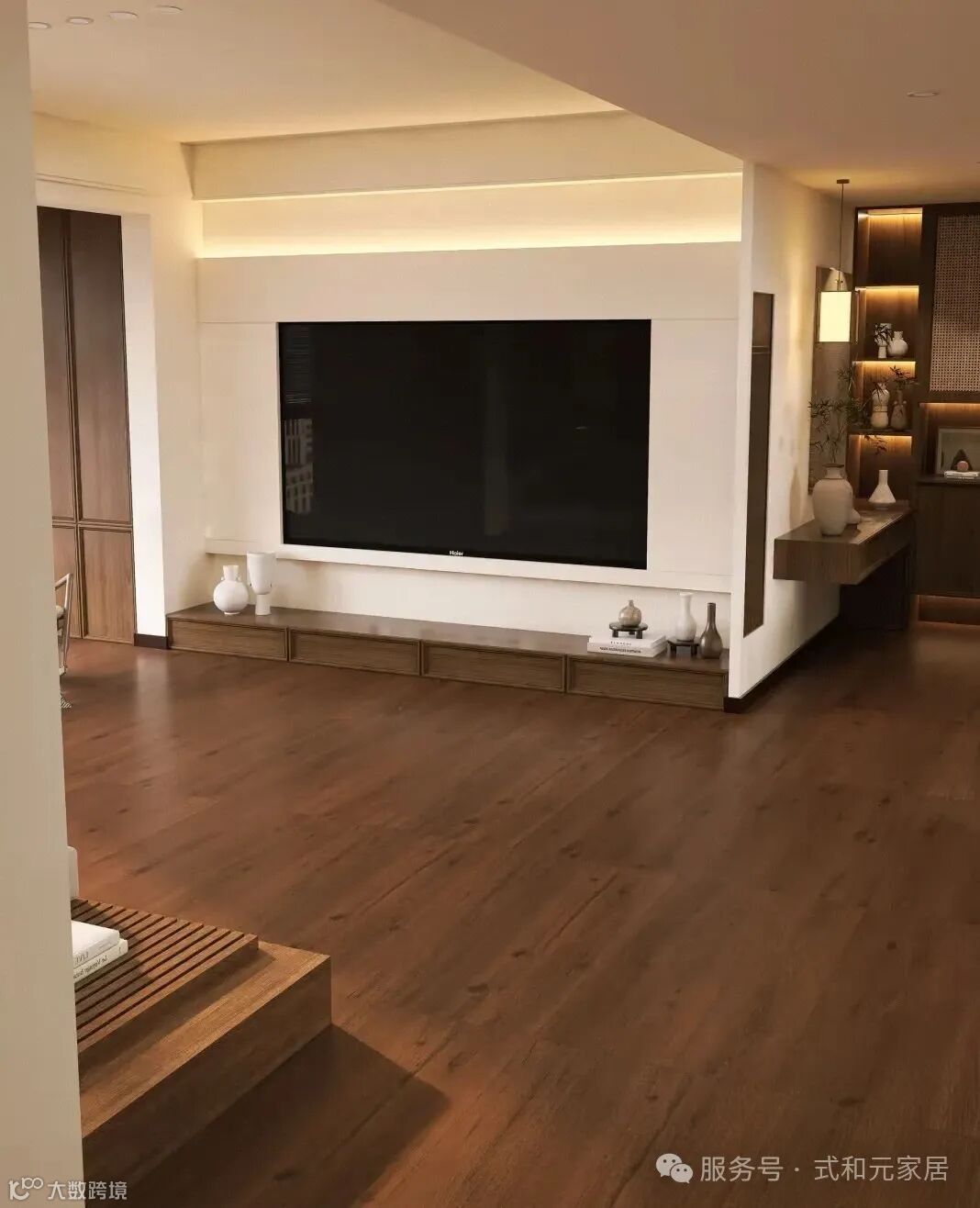 🍂地面通铺木纹砖,暖色调与整体空间色调相呼应,简洁大方,没有繁杂的装饰,却凭借空间结构与材质的巧妙运用🍵