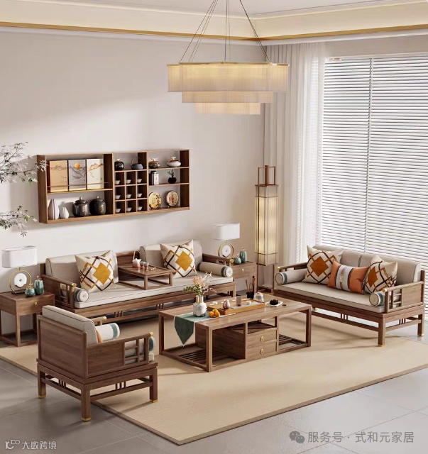 家具的选择上,一套线条简洁流畅的实木沙发尤为瞩目。沙发扶手与靠背的弧度,恰似宋代建筑飞檐的柔美曲线,尽显优雅。搭配米白色的棉麻抱枕,触感柔软舒适,散发着自然的气息。沙发前摆放着一张造型古朴的几案,选用优质木材打造,表面仅做了简单的打磨处理,保留了木材原始的质感与光泽,其上随意放置着几本古籍和一件小巧的瓷器摆件。瓷器以天青色为主调,釉面温润如玉,精致的纹理诉说着宋代制瓷工艺的高超。
